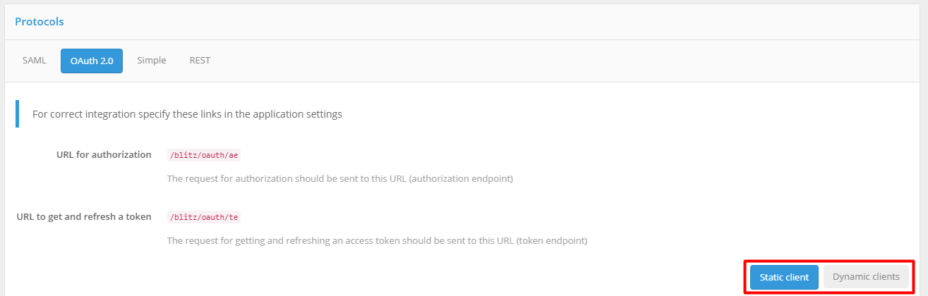 in the OAuth 2.0 settings for this application, click the “Dynamic clients” tab.